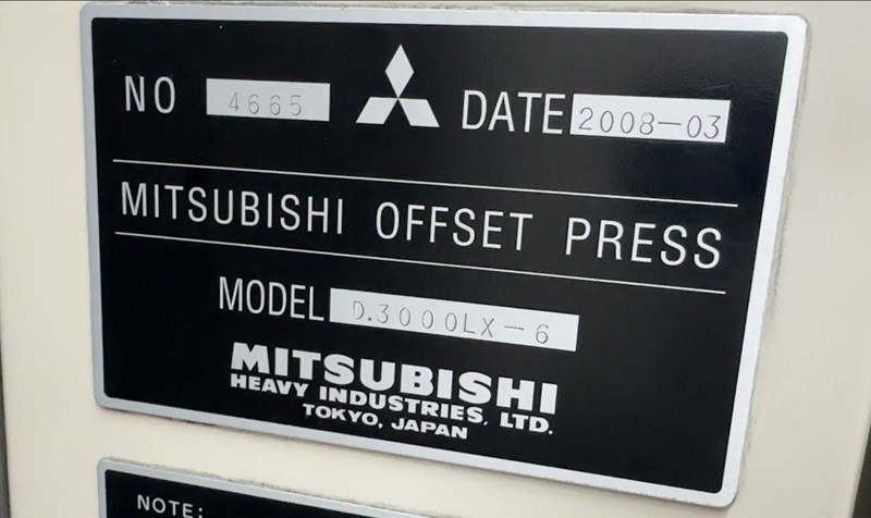 2008 Used Mitsubishi Diamond D3000-LX 6-TC ED 28” x 40” six color with coater, 16,200 IPH, Simulchange